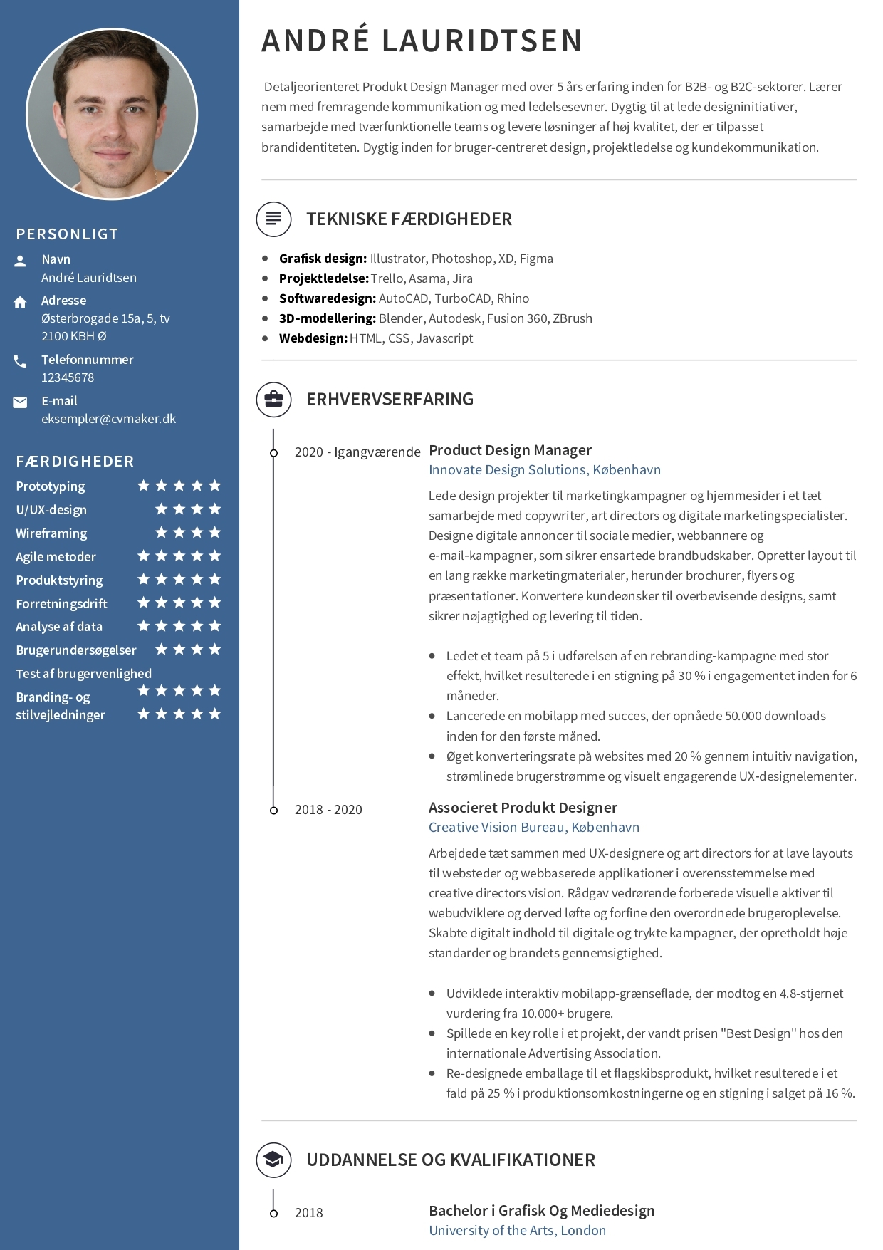 Brug vores brugervenlige CV-builder til at lave et skræddersyet CV eller ansøgning, der passer til det job du søger. Udforsk vores udvalg af CV-eksempler, som kan hjælpe dig med at skabe et målrettet og professionelt CV.