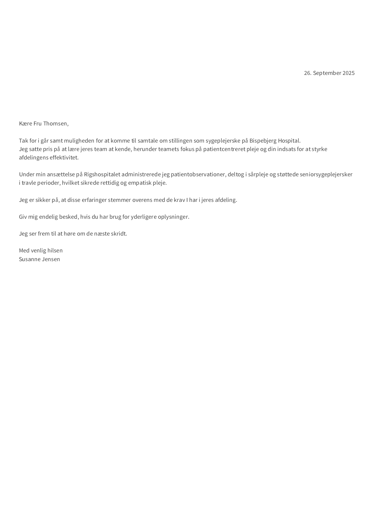 - Send gerne e-mailen inden for 24 timer efter interviewet.